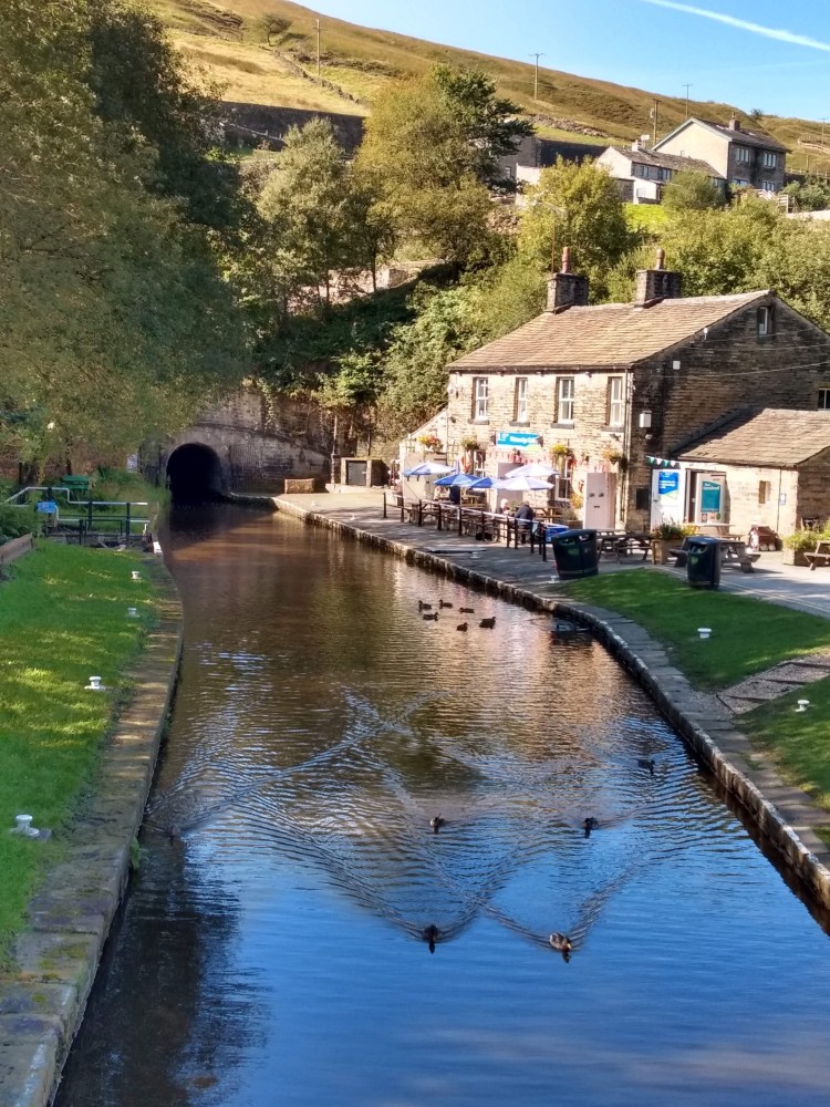 Interessantes am Wegesrand: Zum verbesserten Transport von Waren während der Industrialisierung wurden in den Pennines Kanäle angelegt. Die Kähne, auf denen die Lasten transportiert wurden, wurden durch Pferde gezogen, die auf Treidelpfaden neben dem Wasser liefen. Das kennen wir ja auch vom Rhein.