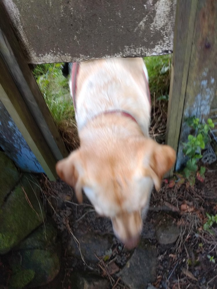 Wir fanden auch noch geschicktere Lösungen Marke Katzenklappe, durch die Marley gerade so durchpasste.